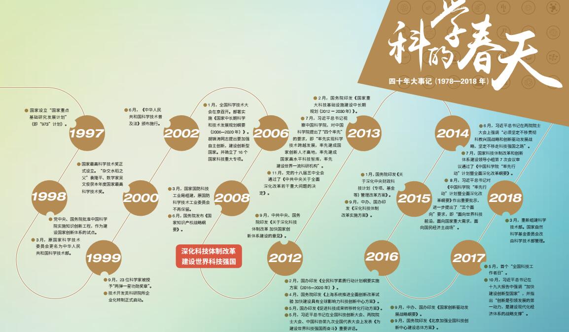 1978?年?3月,黨中央召開全國科學大會,迎來了“科學的春天”。從科學技術是第一生產力、科教興國到實施創新驅動發展戰略,進入新時代把創新作為引領發展的第一動力、加快建設創新型國家,我國科技事業發展歷經改革開放?40?年的艱苦努力和奮勇拼搏,結出累累碩果,正在邁向建設世界科技強國和支撐社會主義現代化強國建設的新征程。?