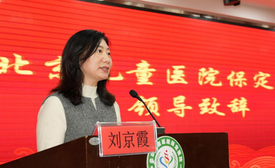 圖為北京兒童醫院保定醫院保健康復中心主任劉京霞致辭。