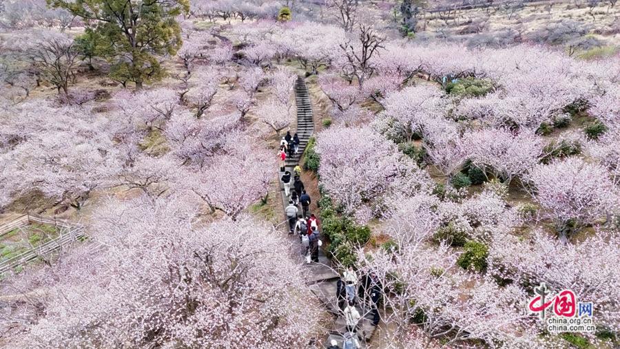 圖為調研團隊考察紹興市柯橋區王壇鎮東村香雪梅海景區。